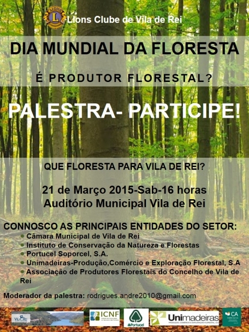 O Auditório Municipal de Vila de Rei recebe, pelas 16h00 do dia 21 de março, a palestra “Que Floresta para Vila de Rei?”, numa iniciativa inserida nas comemorações do Dia Mundial da Floresta.