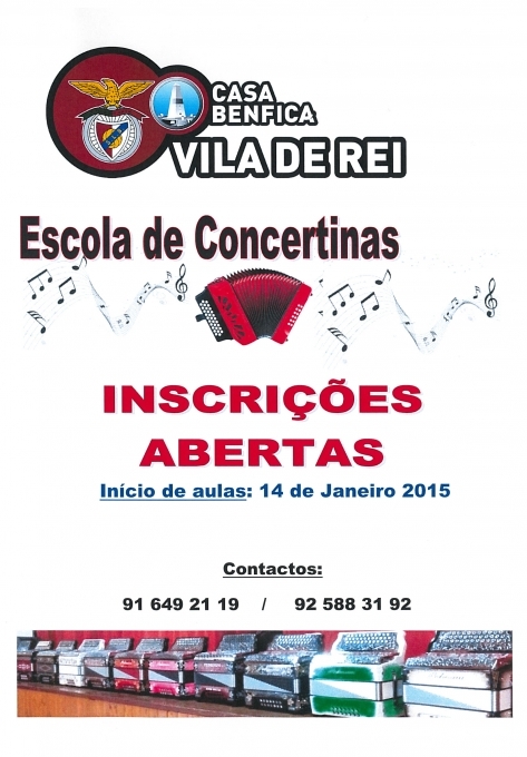 A Casa do Benfica de Vila de Rei, com o apoio da Câmara Municipal, continua a apostar no seu projeto da Escola de Concertinas, encontrando-se já abertas as inscrições para uma nova turma.  As aulas iniciam-se a 14 de janeiro.