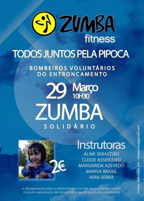 Com o objectivo de angariar fundos para ajudar os familiares a proporcionar mais tratamentos à Beatriz, as instrutoras de zumba Aline Sebastião, Cleide Asseiceiro, Margarida Azevedo, Marisa Brasil e Vera Serra, com a colaboração da Associação Humanitária dos Bombeiros Voluntários do Entroncamento, que disponibilizam o seu Pavilhão, promovem uma aula de zumba fitness.
