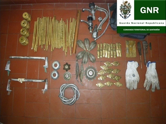 O individuo, residente no concelho de Benavente, com 25 anos de idade, já se encontra indiciado pelo mesmo tipo de ilícito. Foram apreendidas algumas ferramentas, bem como, vários metais provenientes de canalizações sanitárias.
