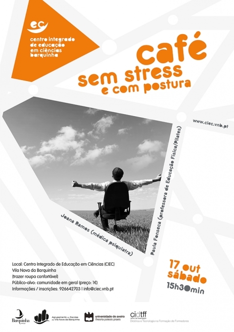 Dia 17 de outubro, às 15h30, no Centro Integrado de Educação em Ciências (CIEC), em Vila Nova da Barquinha, Joana Ramos (médica psiquiatra) e Paula Fonseca (professora de Educação Física/Pilates), são os convidados de Café "sem stress e com postura"