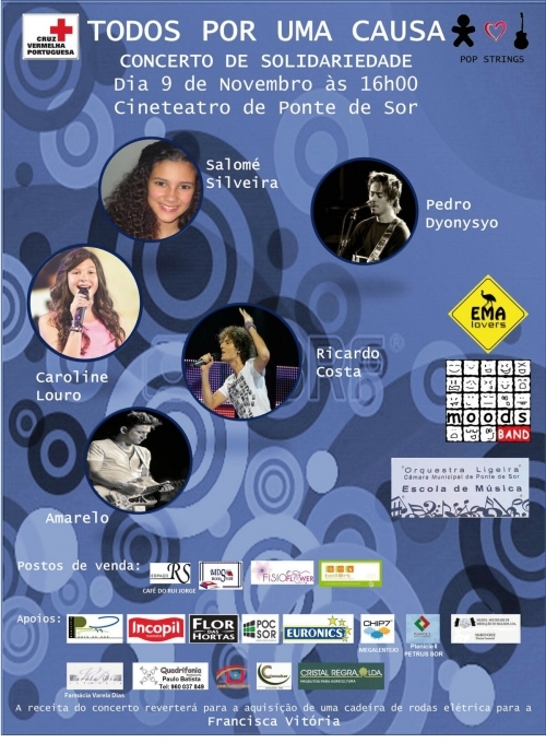O objectivo é a angariação de fundos para a compra de uma cadeira de rodas para Francisca Vitória. Muitos são aqueles que se dispuseram a participar neste concerto solidário “TODOS POR UMA CAUSA”.
