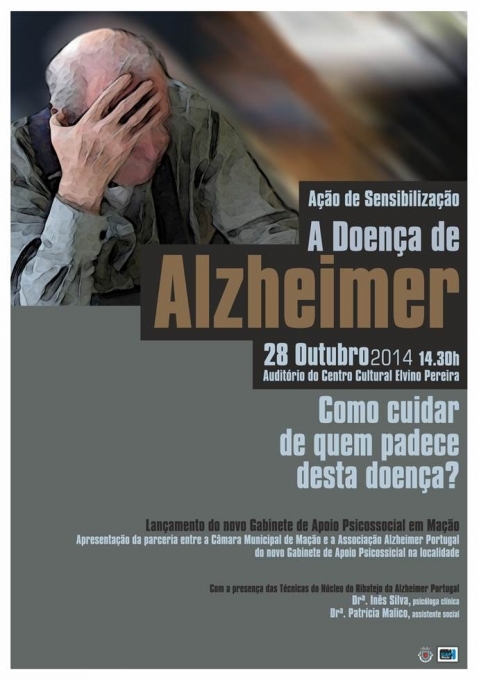 No dia 28 de outubro, a Câmara Municipal de Mação e a Alzheimer Portugal vão realizar a ação de sensibilização "A Doença do Alzheimer - Como cuidar de quem padece desta doença". A acção terá lugar às 14h30 no Auditório do Centro Cultural Elvino Pereira e marcará o lançamento e apresentação do Gabinete de Apoio Psicossocial à Doença de Alzheimer e outras demências, numa parceria ente a Câmara Municipal e a Associação Alzheimer Portugal. Esta nova valência surge no âmbito do Gabinete de Apoio à Pessoa Idosa (GAP) criado em fevereiro de 2014.