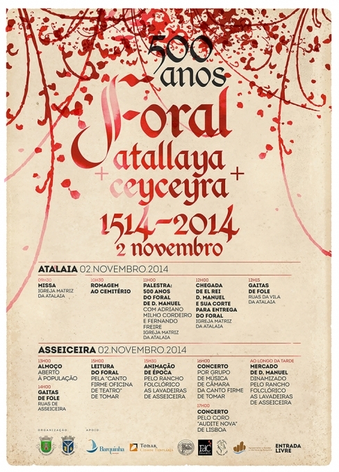 No próximo dia 2 de novembro as freguesias da Atalaia (Vila Nova da Barquinha) e da Asseiceira (Tomar) vão celebrar os 500 anos do Foral num evento que terá lugar nas duas freguesias e onde a entrada é livre.