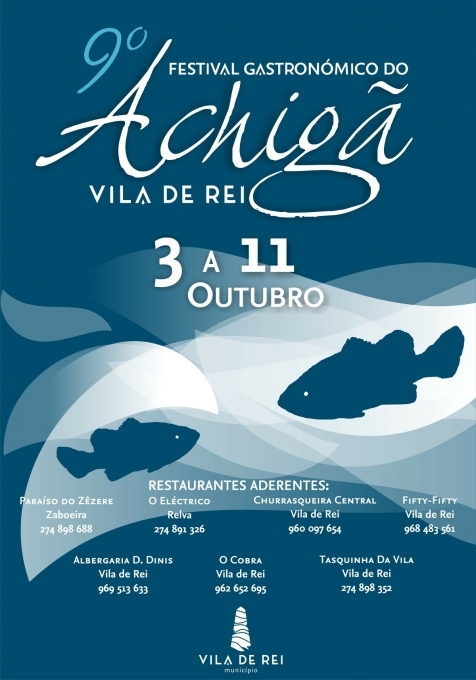 O Festival Gastronómico do Achigã está de volta a Vila de Rei no início de outubro. A nona edição do evento, organizado pela Câmara Municipal de Vila de Rei, fará com que, de 3 a 11 de outubro, o concelho se encha de sabores e aromas que fazem as delícias dos visitantes.