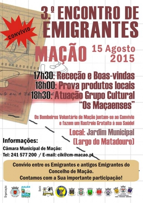 A 15 de agosto terá lugar, pelo 3.º ano, o Convívio entre os Emigrantes do Concelho de Mação. A Câmara Municipal de Mação pretende, com esta iniciativa conhecer e juntar em convívio todos os naturais e descendentes do concelho que são, ou já foram, emigrantes, um encontro em que se avivam e celebram as nossas raízes, esta terra que é de todos.