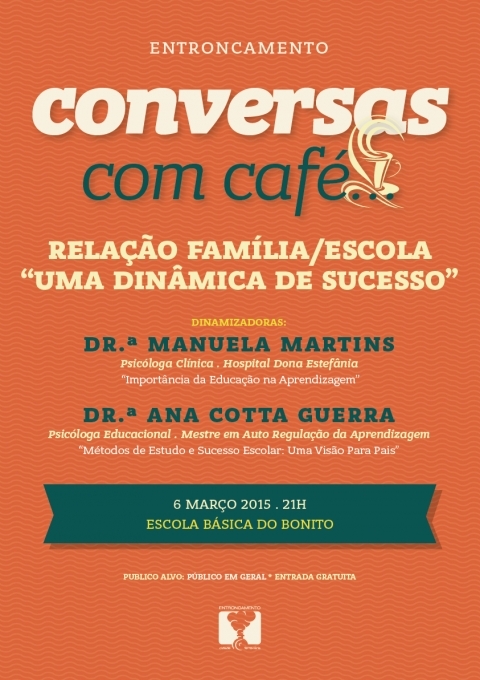 A tertúlia Conversas com Café sobre a Relação Família/Escola “Uma Dinâmica de Sucesso” é dirigida a pais, educadores e a toda a população interessada na área da educação e tem entrada livre, não carecendo de qualquer inscrição.