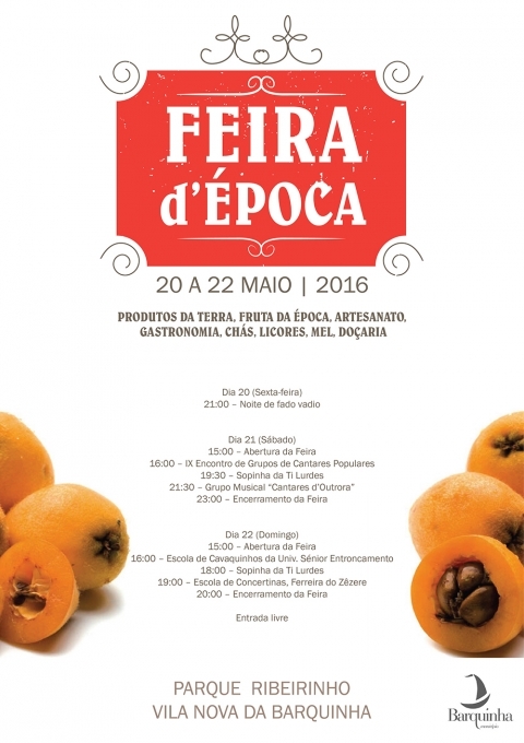 O Município de Vila Nova da Barquinha vai promover mais uma edição da Feira de Época, de 20 a 22 de maio, no Parque Ribeirinho de Vila Nova da Barquinha.