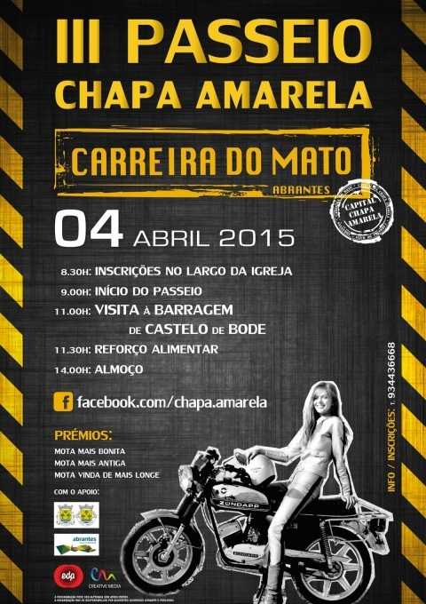 Realiza-se em Carreira do Mato (Abrantes) amanhã, 4 de abril, o "III Passeio Chapa Amarela". O evento baseia-se numa Passeio de Motorizadas Antigas pelas aldeias do concelho de Abrantes.