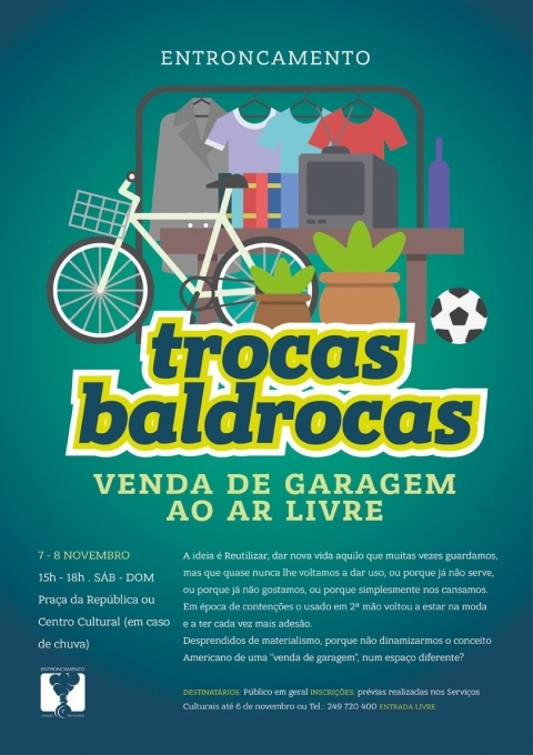 Intitulada de “Trocas e Baldrocas”, a atividade irá decorrer na Praça da República, das 15h00 às 18h00 e tem como conceito dar uma nova utilização aos artigos que se têm em casa e que já não são usados.