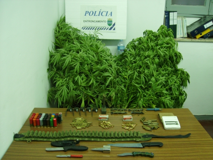 Resultaram da busca domiciliária a apreensão de várias dezenas de munições de diversos calibres, bem como algumas armas brancas e material tipo militar (espoletas, minas antipessoal) e também algumas substâncias suspeitas de ser “canábis”.