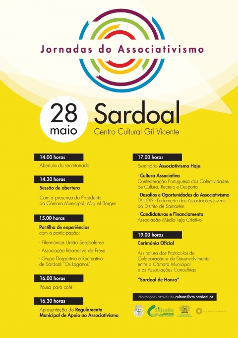 O Município de Sardoal vai promover as Jornadas do Associativismo, a 28 de maio, no Centro Cultural Gil Vicente, onde decorrerá a Assinatura dos Contratos Programa entre a Câmara Municipal e as Associações Concelhias.