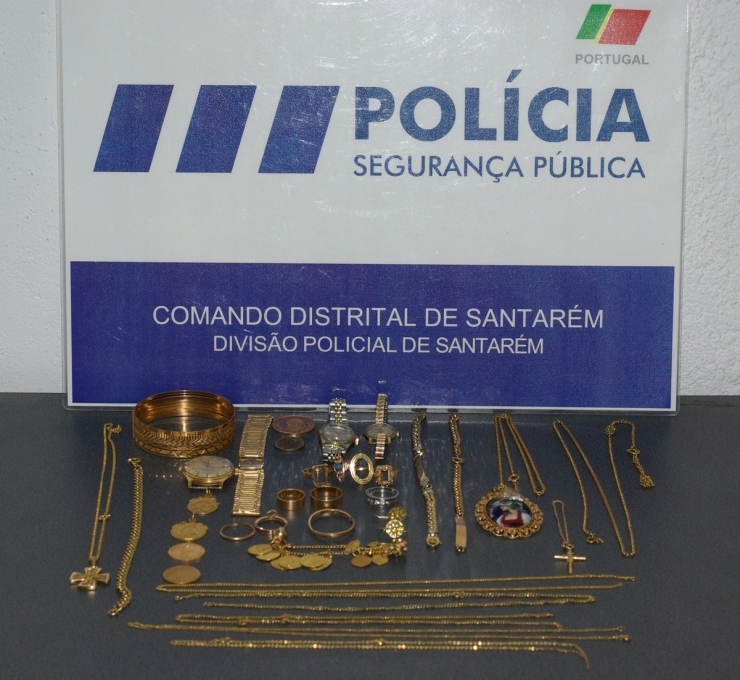 A PSP de Santarém localizou e aprendeu as jóias, no dia 31agosto, numa loja de compra e venda de ouro: 27 peças daquele metal precioso num valor superior a 9.000 euros. A investigação prossegue no sentido de localizar e identificar os autores do crime.