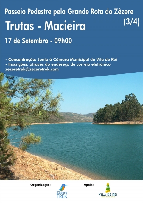 A ZêzereTrek, numa parceria com o Município de Vila de Rei, organiza, no próximo dia 17 de setembro, o terceiro de quatro Passeios Pedestres que percorrerão o percurso Vilarregense da Grande Rota do Zêzere.