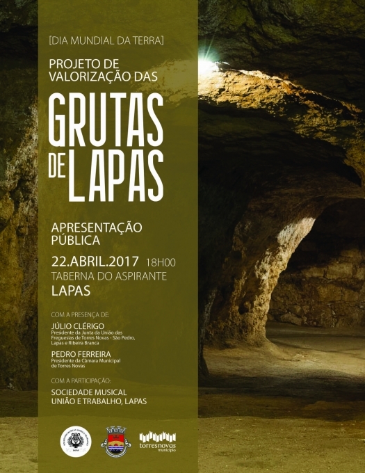 No dia 22 de abril, às 18.00h, Dia Mundial da Terra e Dia Nacional do Património Geológico, decorrerá a apresentação pública do projecto de valorização das Grutas de Lapas, na Taberna do Aspirante, em Lapas.