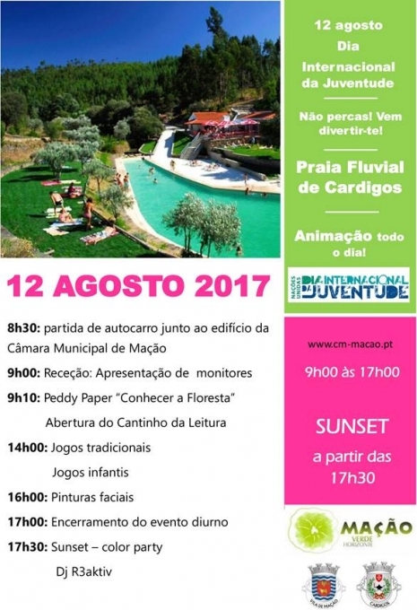 A 12 de agosto assinala-se o Dia Internacional da Juventude que, este ano, tem lugar a um sábado e será comemorado na Praia Fluvial de Cardigos, entre as 9h00 e as 17h00.