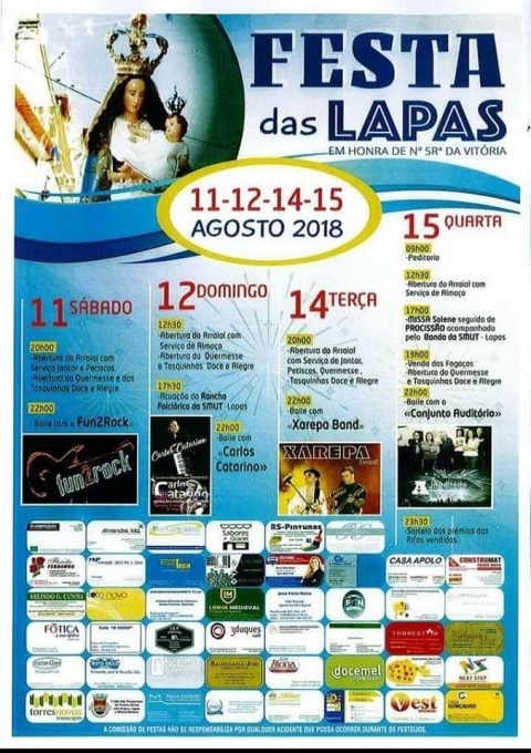 A aldeia de Lapas, em Torres Novas, estará em festa dias 11, 12, 14 e 15 de Agosto, em honra de Nossa Senhora da Vitória, padroeira da terra.
