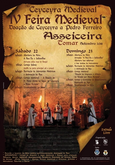 A quarta edição da Ceyceyra Medieval decorre em Asseiceira (Tomar) nos dias 22 e 23 de Setembro. Quando passam exactamente 800 anos sobre a referência histórica mais antiga a este lugar (a doação pelos Templários a Paio Farpado, tema da edição anterior), esta recriação histórica terá como tema o passo seguinte para a consolidação do território como espaço habitado, a nova doação, quatro anos depois, a Pedro Ferreiro.