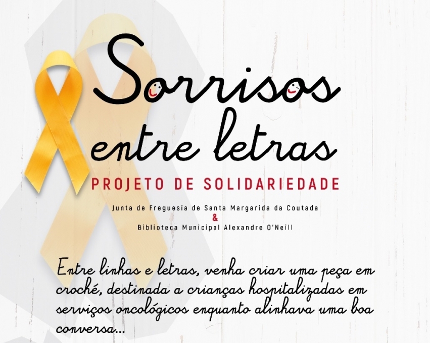 O Projecto "Sorrisos Entre Letras" já arrancou em Santa Margarida da Coutada. A partir de agora, todas as quartas-feiras das 14.00h às 17.00h, no Posto de Leitura da Junta de Freguesia de Santa Margarida da Coutada, é possível, entre linhas e letras, criar peças em croché, destinada a crianças hospitalizadas em serviços oncológicos, enquanto se desfia uma boa conversa.