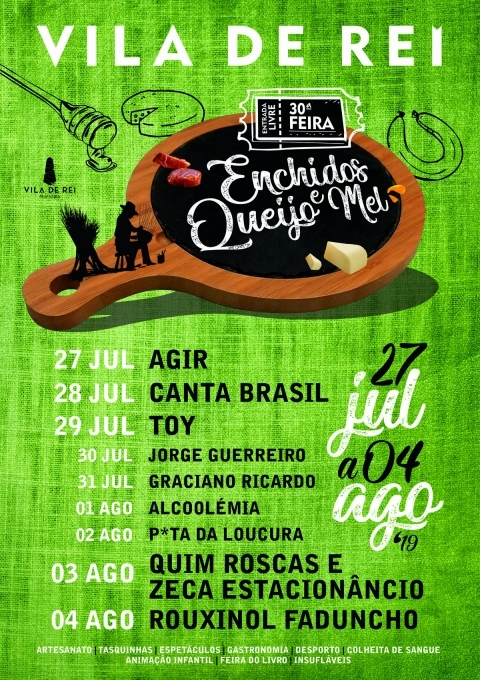 O parque de Feiras de Vila de Rei vai voltar a ser palco da Feira de Enchidos, Queijo e Mel, iniciativa que divulga os produtos endógenos e artesanais do Concelho e promove as atividades empresariais Vilarregenses. Organizada pelo município de Vila de Rei, a trigésima edição da Feira de Enchidos, Queijo e Mel (FEQM) vai decorrer de 27 de julho a 4 de agosto.