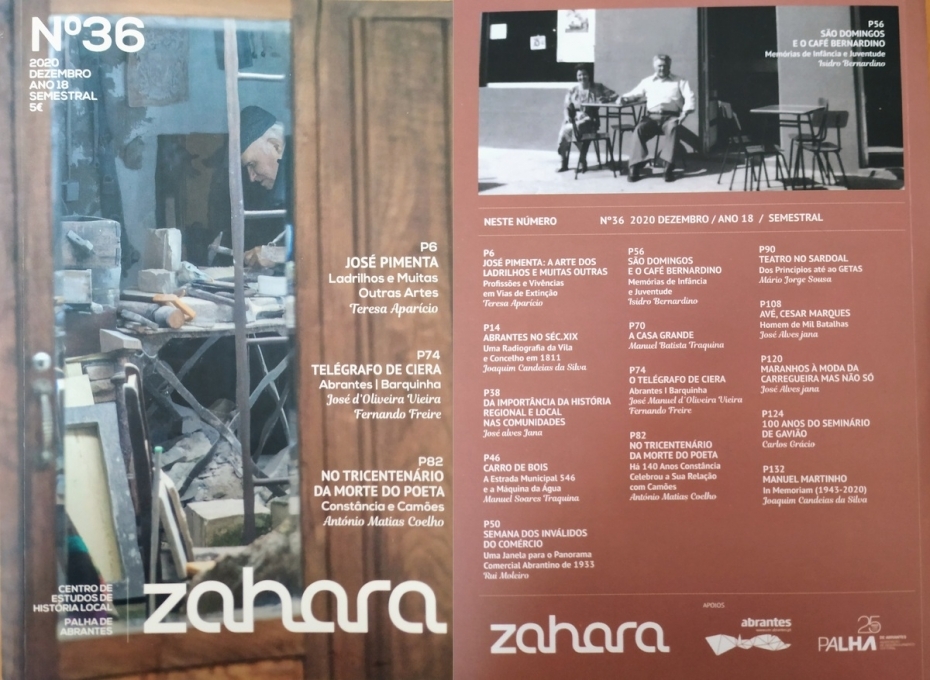 A edição número 36 da revista Zahara, uma publicação semestral de história local para os concelhos de Abrantes, Constância, Gavião, Mação, Sardoal, Vila de Rei e Vila Nova da Barquinha, já se encontra disponível.