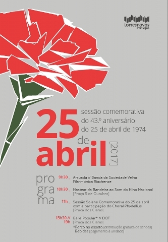 Em Riachos (Torres Novas), as comemorações do 43.º aniversário da Revolução dos Cravos iniciam-se, às 9h30, com a arruada, pela Banda da Sociedade Velha Filarmónica Riachense