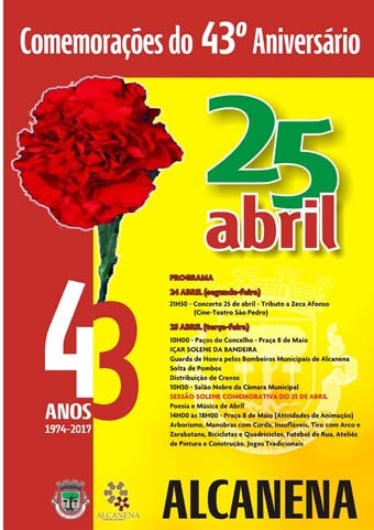 Para comemorar os 43 anos do 25 de Abril de 1974, realiza-se uma sessão solene da Assembleia Municipal, terça feira, às 17h30, na Praça Raimundo Soares.