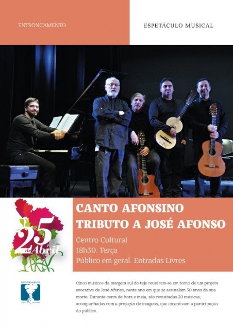 No âmbito das comemorações do Dia da Liberdade, o Município do Entroncamento promove no dia 25 de abril, pelas 18h30, no Centro Cultural, o concerto Canto Afonsino - Tributo a Zeca Afonso.