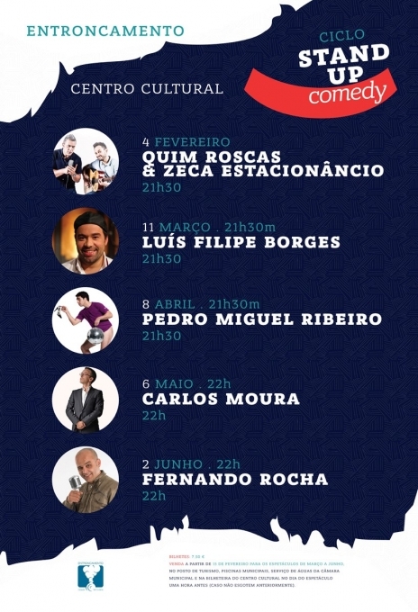 A Câmara Municipal do Entroncamento promove até junho um ciclo de espectáculos de stand up comedy. Será um espectáculo por mês, apresentado por humoristas portugueses conhecidos do grande público.