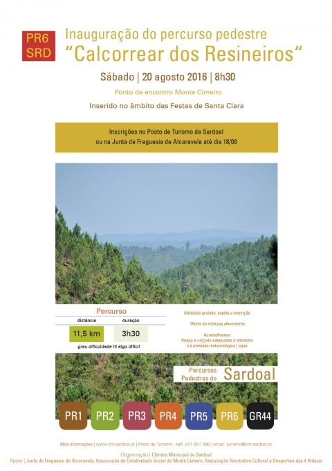O Município de Sardoal vai inaugurar, a 20 de agosto, o sexto Percurso Pedestre de pequena rota no Concelho – PR6 “Calcorrear dos Resineiros”, na freguesia de Alcaravela. A inauguração, integrada no programa da Festa de Alcaravela ... +
