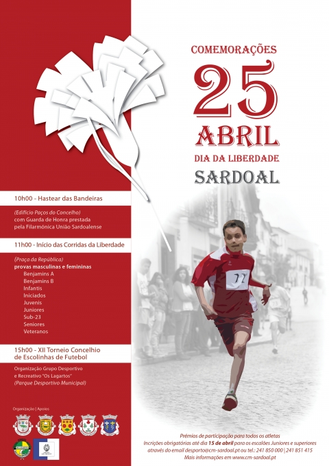 O Município de Sardoal assinala o 25 de Abril com actividades desportivas, através da realização das habituais Corridas da Liberdade e do Torneio Concelhio de Escolinhas de Futebol. Às 10h00 com o Hastear das Bandeiras, no Edifício ... +