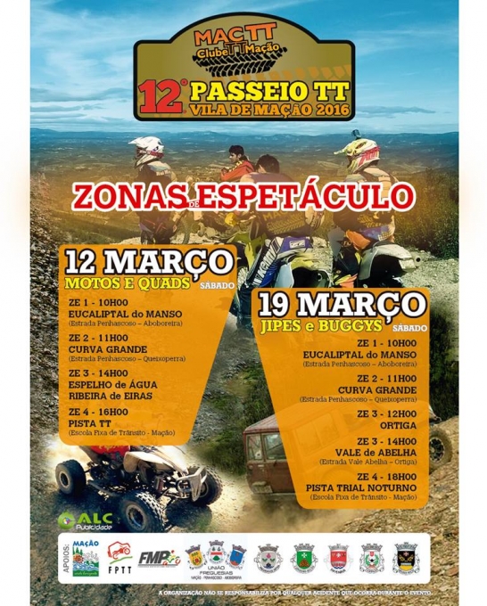 Realiza-se amanhã o primeiro dos dois Passeios Mac TT Vila de Mação 2016. O Passeio, na sua 12.º edição, oferece dois fins-de-semana todo-o-terreno em Mação aos amantes da modalidade: pilotos e fãs.