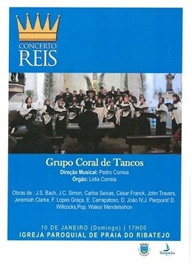 Dia 10, às 17h00, a Igreja Paroquial da Praia do Ribatejo vai ser palco do Concerto de Reis pelo Grupo Coral de Tancos. Com direcção musical de Pedro Costa e organista Lídia Correis são interpretadas obras de ... +