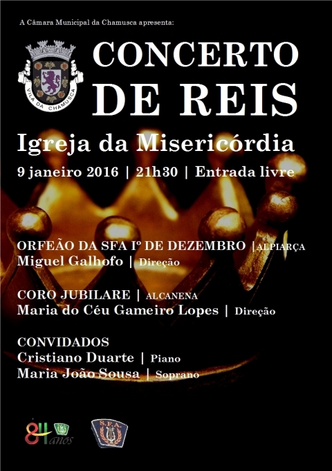 O Município da Chamusca apresenta no próximo dia 9, pelas 21h30, o Concerto de Reis que terá lugar na Igreja da Misericórdia da Chamusca.
