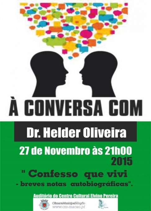 Dia 27, às 21h00, no Auditório do Centro Cultural Elvino Pereira, Hélder Oliveira é o convidado de “À Conversa com…”. “Confesso que vivi - Breves notas autobiográficas” é o tema