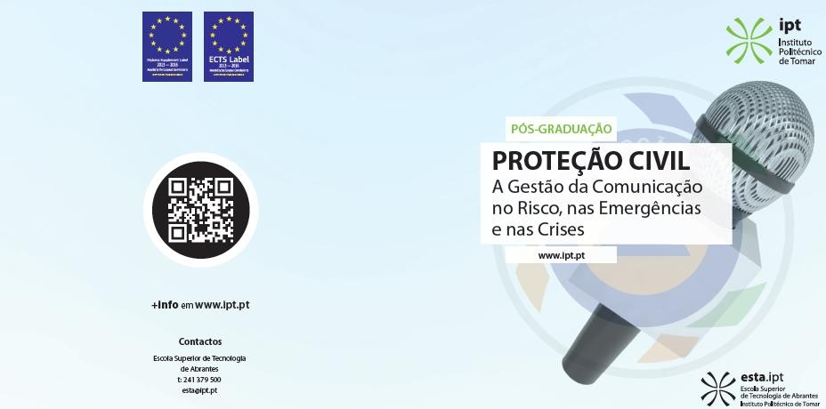 Encontram-se abertas até dia 11 de outubro as candidaturas online para o curso de Pós-Graduação Proteção Civil - Gestão da Comunicação no Risco, na Emergência e na Crise promovida pela Escola Superior de Tecnologia de Abrantes (ESTA) ... +