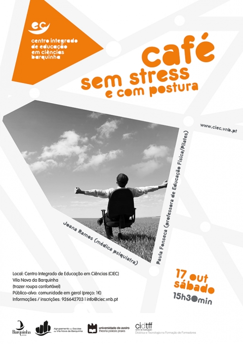 Dia 17 de outubro, às 15h30, no Centro Integrado de Educação em Ciências (CIEC), em Vila Nova da Barquinha, Joana Ramos (médica psiquiatra) e Paula Fonseca (professora de Educação Física/Pilates), são os convidados de Café "sem stress ... +