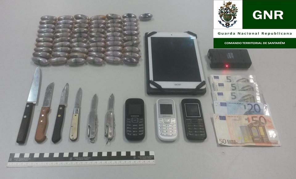 Um homem de 40 anos, de nacionalidade marroquina, residente em Samora Correia, foi detido no dia 1 de outubro, pelas 08h30, por tráfico de estupefacientes, por guardas da GNR local, durante uma fiscalização rodoviária.