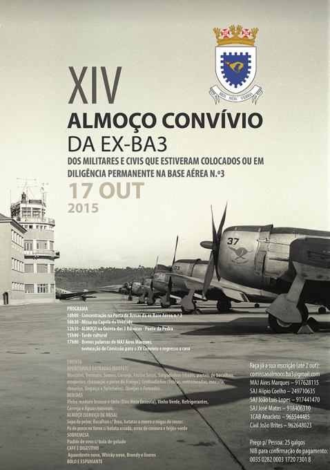 No dia 17 de outubro, realiza-se mais um almoço convívio dos militares e civis que estiveram colocados ou em diligência permanente na Base Aérea N.º 3 (BA3), em Tancos, concelho de Vila Nova da Barquinha. Esta iniciativa, ... +