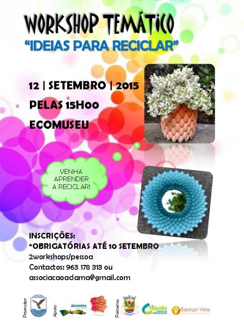 A ACLAMA - Associação Cultural Os Amigos de Martinchel, promove o 5º workshop temático "Ideias para Reciclar", no dia 12 de setembro, pelas 15h00, no Ecomuseu, em Martinchel.