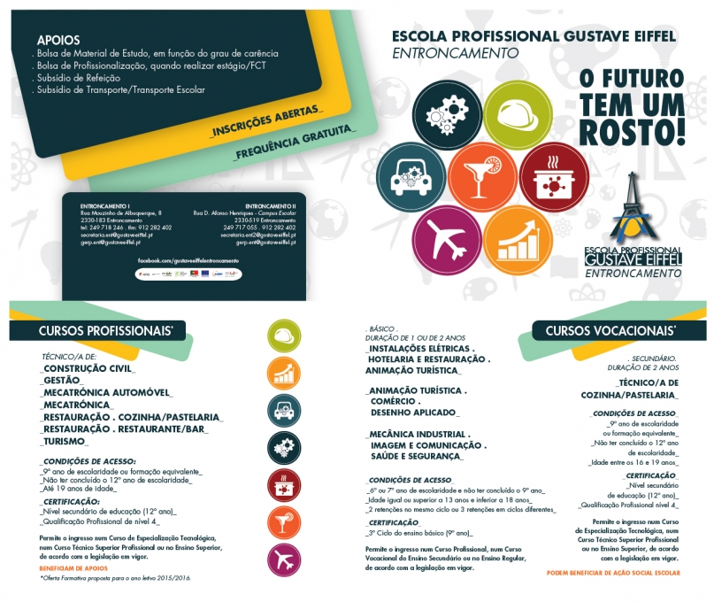 Na Escola Gustave Eiffel, no Entroncamento, estão abertas as inscrições para diversos cursos vocacionais e profissionais para o próximo ano lectivo.