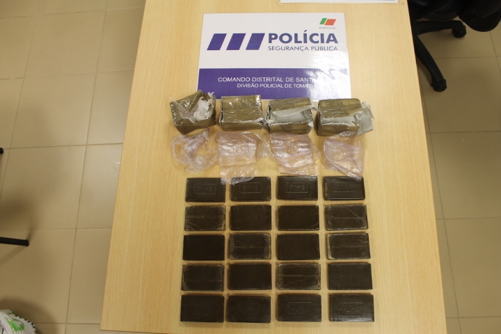 A PSP de Tomar deteve um homem, maior de idade, que transportava uma mochila com uma quantidade haxixe suficiente para cerca de 10 100 doses individuais, com um valor de mercado de aproximadamente 10 000 euros.
