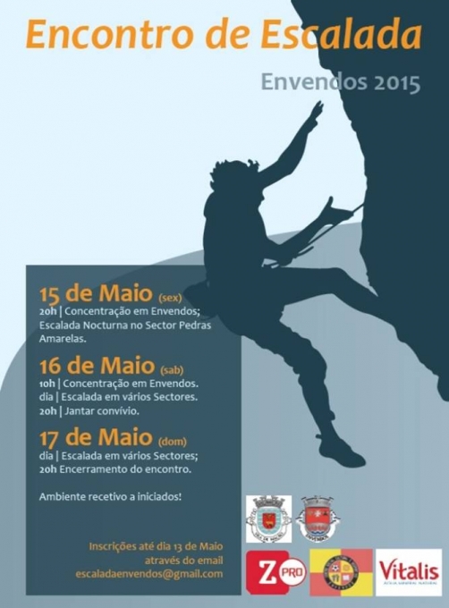 A Z-Pro promove mais um Encontro de Escalada em Envendos, no Concelho de Mação. Este ano a iniciativa realiza-se nos dias 15, 16 e 17 de maio (ver programação no cartaz).