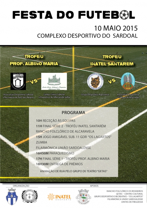 O Complexo Desportivo Municipal de Sardoal acolhe, no domingo, 10 de maio, a partir das 10 horas, a Festa do Futebol com a disputa dos Troféus Professor Albino Maria e Inatel Santarém.