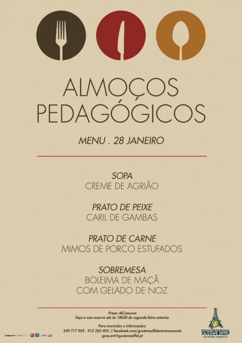 A Escola Profissional Gustave Eiffel, do Entroncamento, abre o seu Restaurante Pedagógico ao público externo no dia 28 (quarta-feira), com o almoço pedagógico semanal.