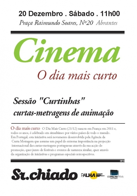 A Palha de Abrantes - Associação de Desenvolvimento Cultural apresenta, no próximo dia 20 de dezembro, às 11h00, mais uma sessão da iniciativa "o dia mais curto".