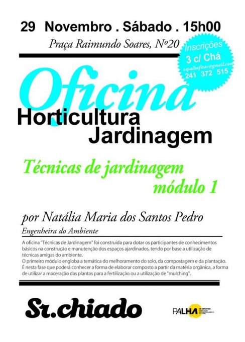 A Associação Palha de Abrantes organiza, a 29 de novembro, às 15h00, no Sr. Chiado, em Abrantes, mais uma Oficina de Botânica, desta vez dedicada ao tema “Técnicas de Jardinagem - módulo 1”.