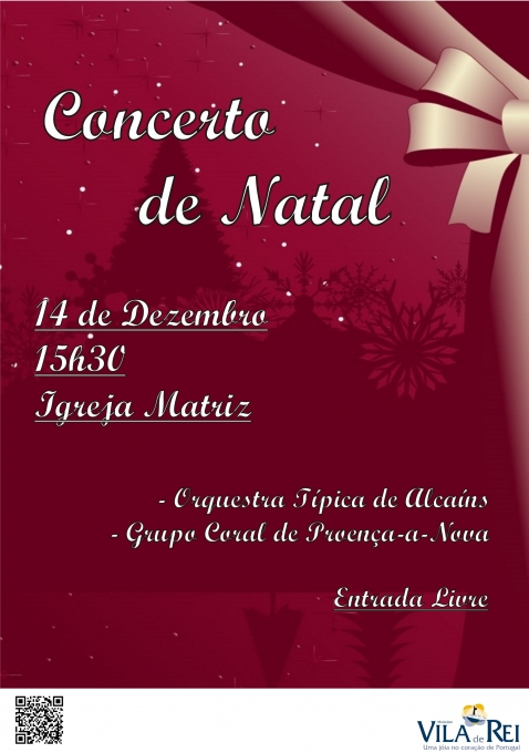 A Câmara Municipal de Vila de Rei organiza, pelas 15h30, de 14 de dezembro, um Concerto de Natal. na Igreja Matriz de Vila de Rei.