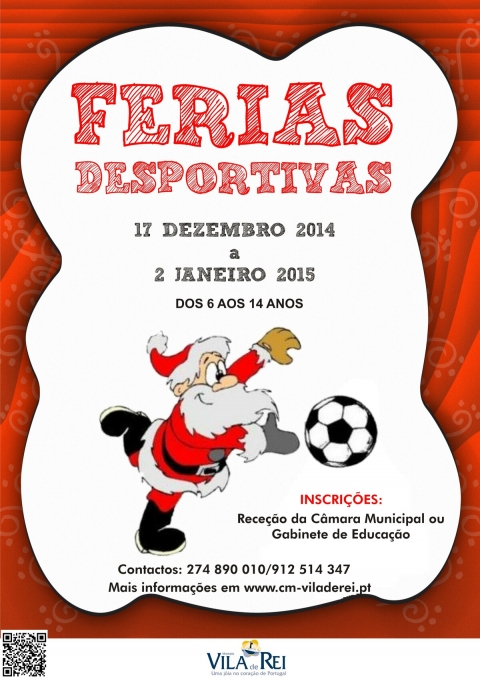 Encontram-se abertas as inscrições para as Férias Desportivas de Natal, para crianças e jovens dos 6 aos 14 anos, que irão decorrer de 17 de dezembro a 2 de janeiro de 2015.
