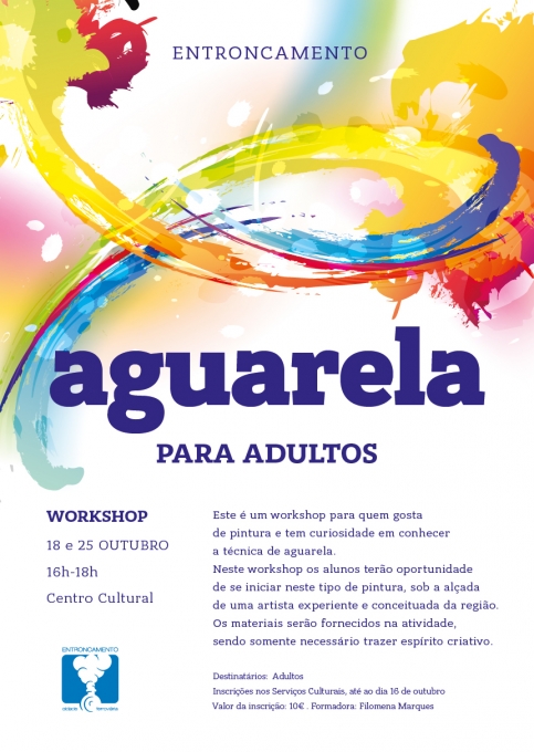 A Câmara Municipal do Entroncamento vai promover nos dias 18 e 25 de outubro, sábados, dois workshops de pintura em aguarela dirigidos a adultos.